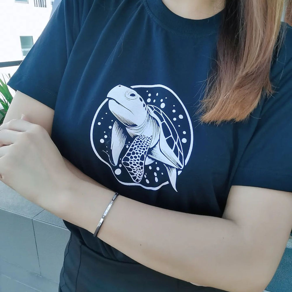 This unique design is made from a blend of 60% cotton and 40% polyester for comfort and durability, featuring a 2cm rib collar, taped neck, and double-needle sleeves and bottom hems. When you purchase this tee, you’re not only showing your love for sea turtles, but you’re also making a positive impact.