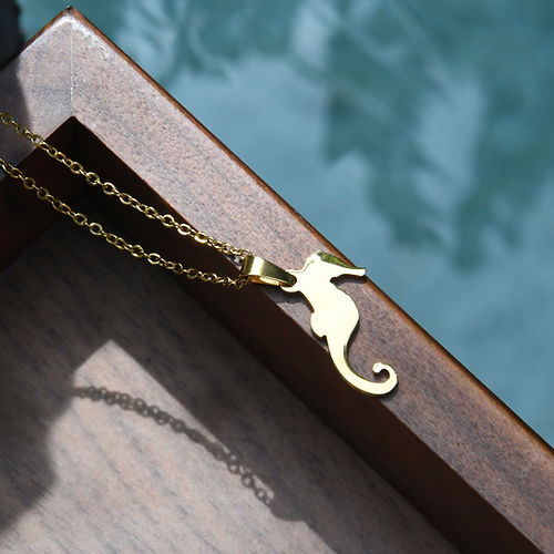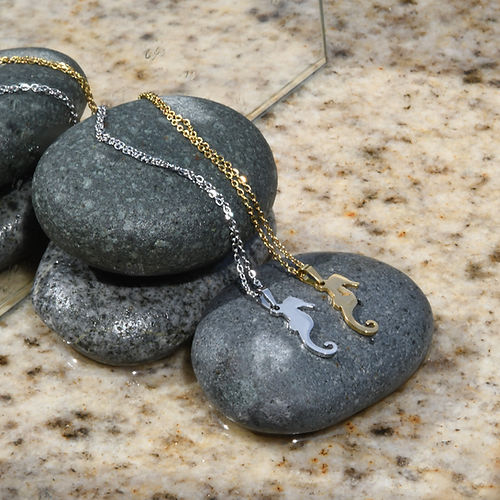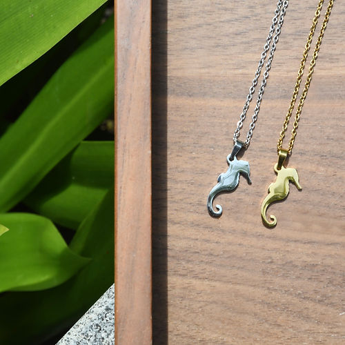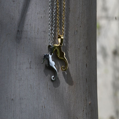 Crafted from high-quality stainless steel, this necklace features a beautiful 2cm seahorse pendant and comes in either gold or silver. The 45cm chain length makes it the perfect accessory to complete any outfit.
